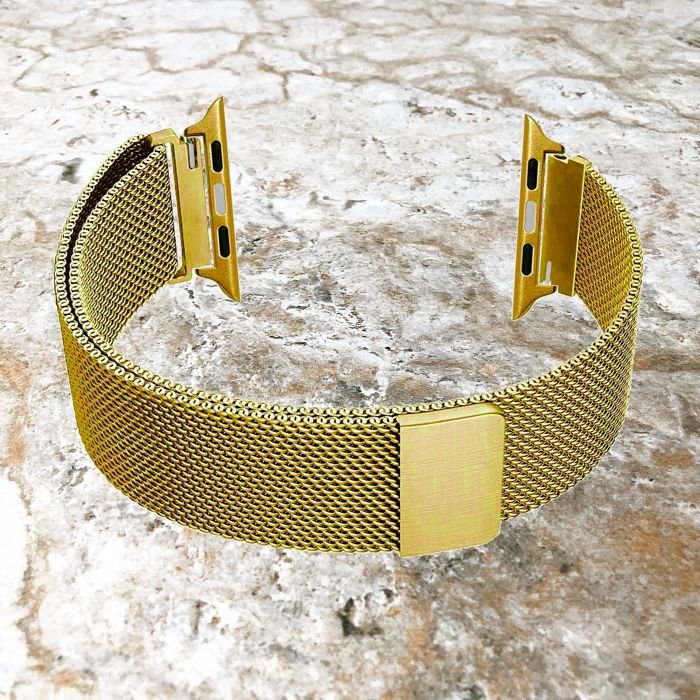 These are stainless steel metal straps. Mesh Design. Very High Quality. With Variable Magnetic Lock Which Is Good And Provide Infinite Adjustments. From Thick Wrist To Thing Wrist. Very Good Build Quality. Mesh Desing Provide Good Airflow. These Straps Are Compatible With Apple Original 42-44MM Watches. And Also Compatible With All Chinese Replica Watches Which Have 42-44MM Slots. E.G: T500 PLUS / T500 / T55 / T55 Plus / MC72 Pro / HW22 / HW22 Plus / HW22 Pro / DT100 Pro Plus / I7 Pro / iWatch 7 / LD5 / w26 Plus / w28 Plus / w28 Plus And All Other Replica. PRODUCT CODE – (ChainGold). AVAILABILITY – Instock = 3 Products.